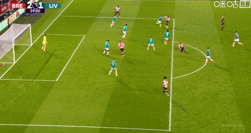 第5分钟,手榴弹战术,瓦塔拉半凌空倒钩破门,布伦特福德1-0利物浦
